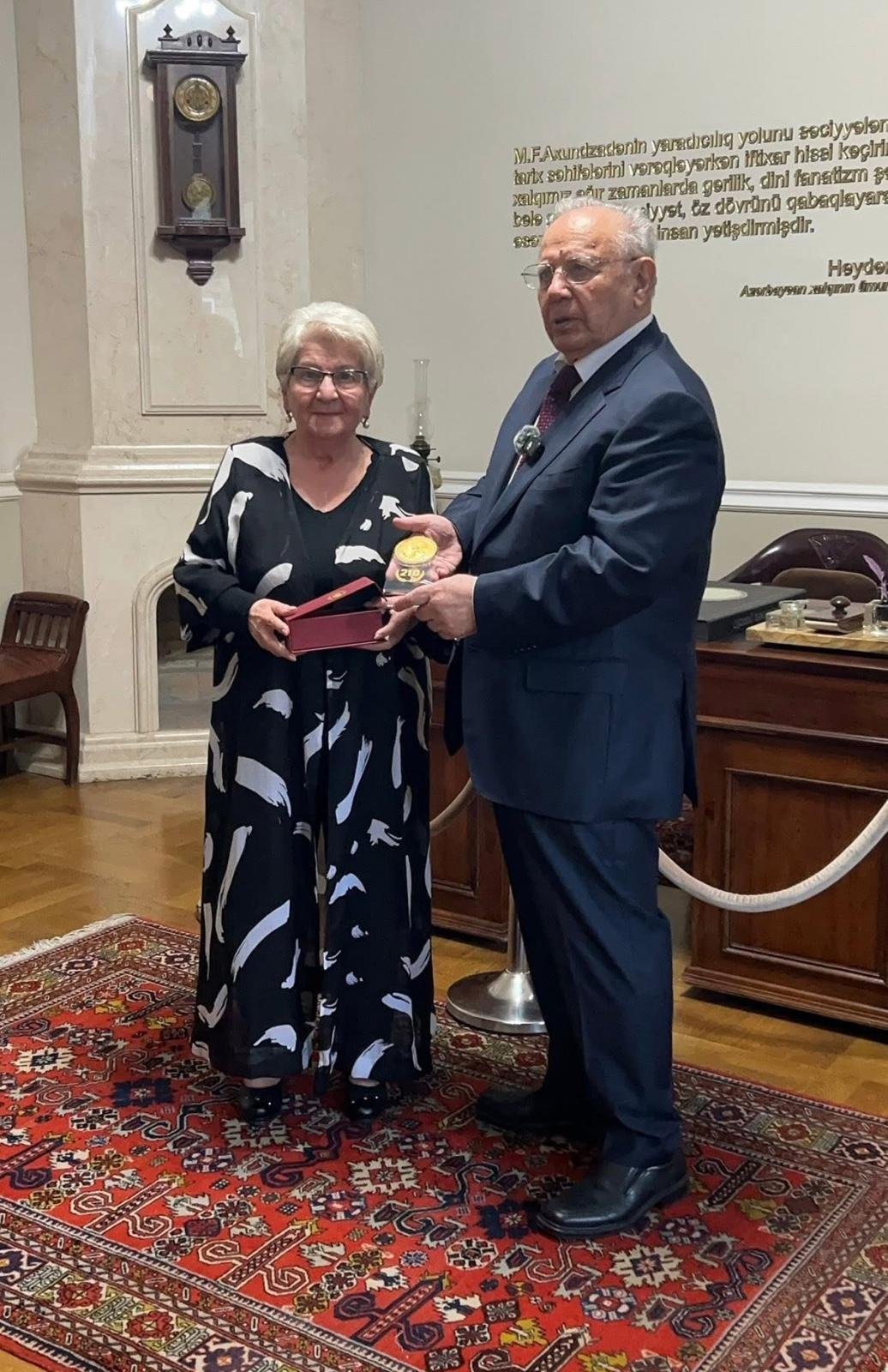 ღონისძიების ბოლოს მუზეუმის დირექტორმა ლეილა ალიევამ ჰასან ჰასანოვს გადასცა ახუნდოვის დაბადებიდან 210 წლის იუბილესთან დაკავშირებით დაარსებული სამახსოვრო მედალი. მედალი შეფასდა, როგორც გამოჩენილი სახელმწიფო მოღვაწის მიერ აზერბაიჯანის კულტურაში, ლიტერატურასა და მეცნიერული მემკვიდრეობის პოპულარიზაციაში შეტანილი დიდი წვლილის აღიარება.