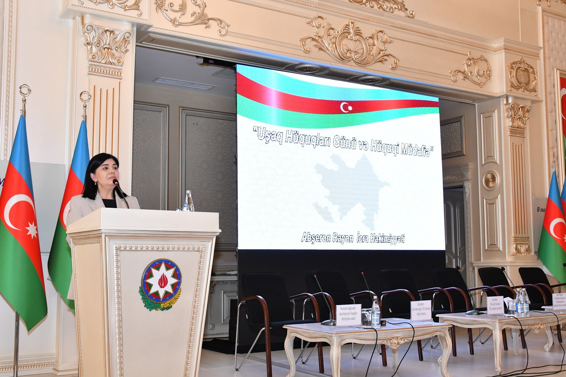 Sonra Abşeron RİH-nin Hüquq şöbəsinin müdiri, RİH yanında UHMK-nın sədri Rəşad Qubadov geniş məruzə ilə çıxış edib. O bildirib ki, hər bir xalqın, dövlətin ən böyük və qiymətli sərvəti uşaqlardır.