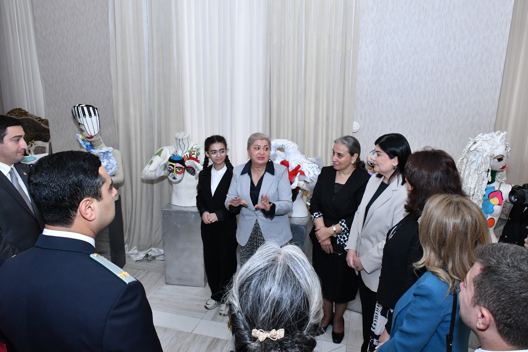 Daha sonra Heydər Əliyev Mərkəzinin foyesində uşaqlara həsr olunan sərgiyə baxış keçirilib. Ulu Öndər Heydər Əliyevin və vətənimizin bütövlüyü uğrunda şəhidlik zirvəsinə ucalan qəhrəmanlarımızın əziz xatirəsi birdəqiqəlik sükutla yad edilib.