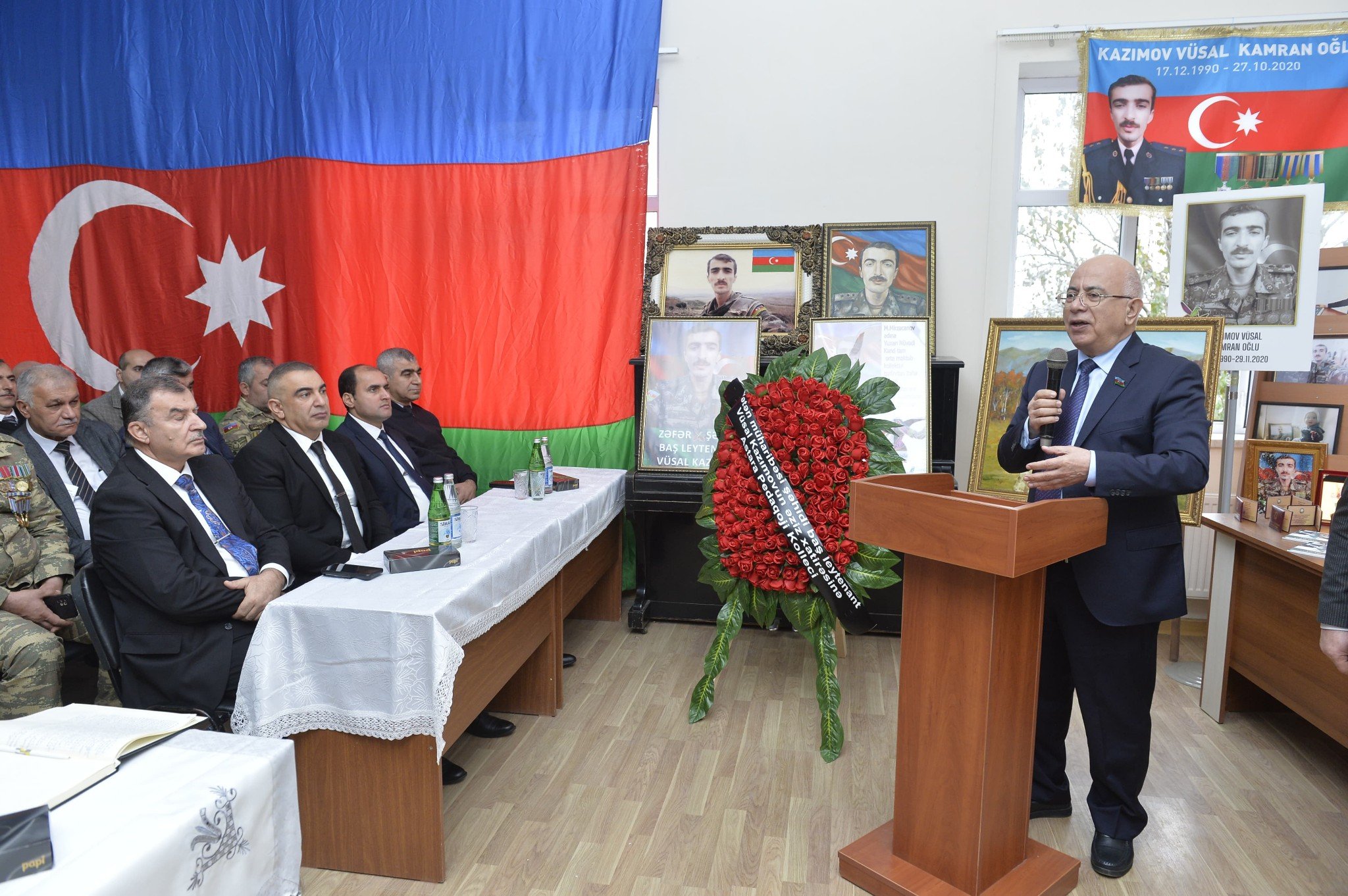 Daha sonra şəhid atası, professor Kamran Kazımov çıxış edərək tədbir iştirakçılarını səmimi-qəlbdən salamlamış, övladının xatirəsinə göstərilən yüksək ehtirama görə məktəb rəhbərliyinə və təşkilatçılara dərin təşəkkürünü bildirmişdir. O vurğulamışdır ki, bu cür tədbirlər təkcə şəhidlərin əziz xatirəsinin yaşadılmasına deyil, həm də gənc nəslin vətənə sədaqət və dövlətçilik ruhunda tərbiyəsinə mühüm töhfə verir. Professor Kamran Kazımov qeyd etmişdir ki, məktəb kollektivinin göstərdiyi diqqət və həssaslıq şəhid ailələrinə mənəvi dayağın ən ali nümunəsidir və bu münasibət hər bir azərbaycanlının qəlbində xüsusi hörmət doğurur.