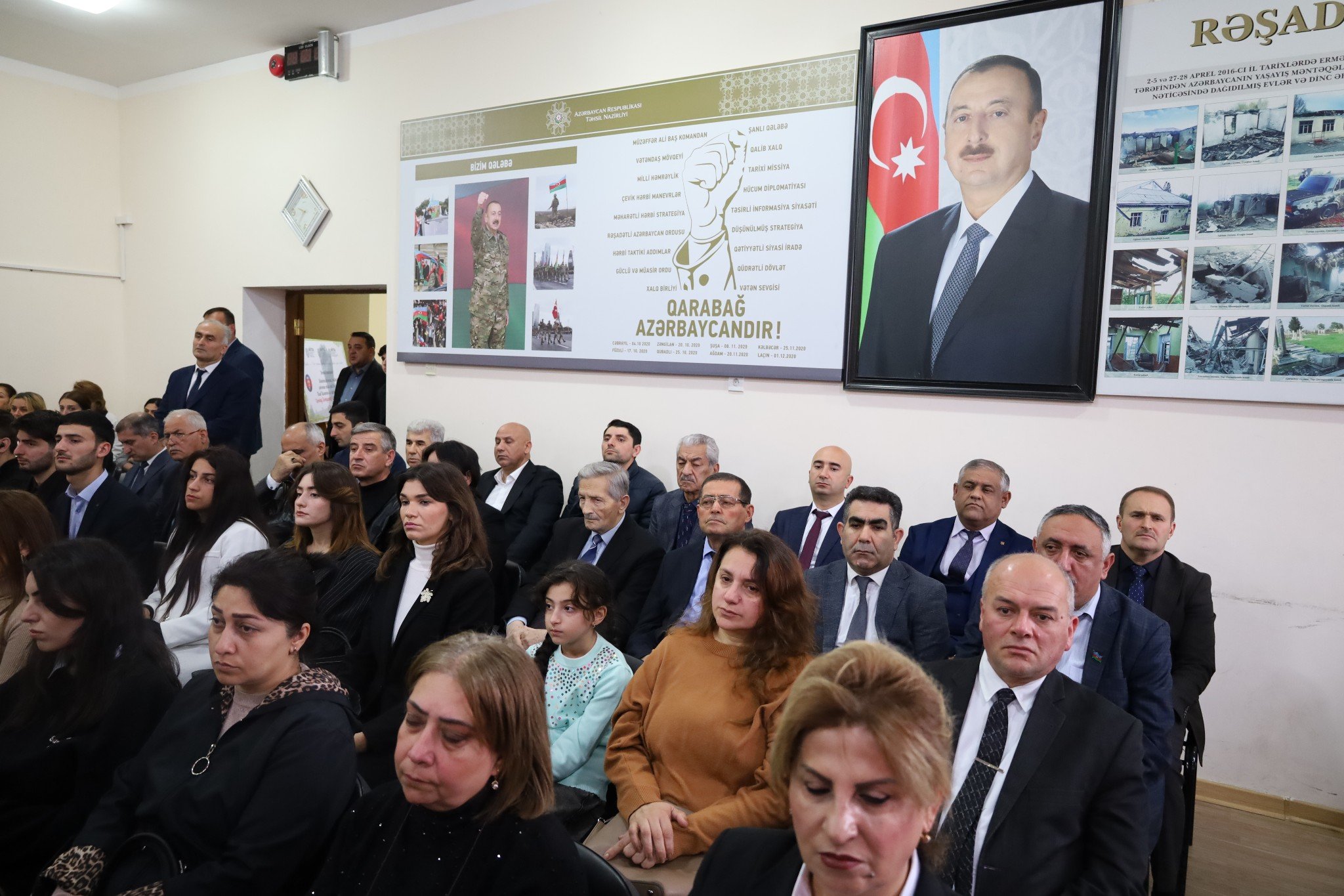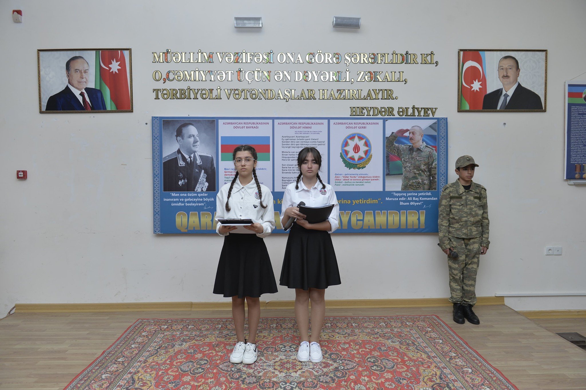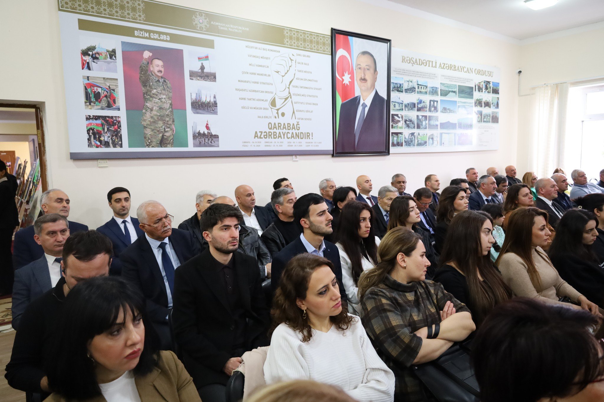 Tədbir şəhidlərin əziz xatirəsinin bir dəqiqəlik sükutla yad edilməsi və məktəblilər tərəfindən Dövlət Bayrağının zala gətirilməsi ilə başlayan Dövlət Himninin səsləndirilməsi ilə açıq elan edilib.