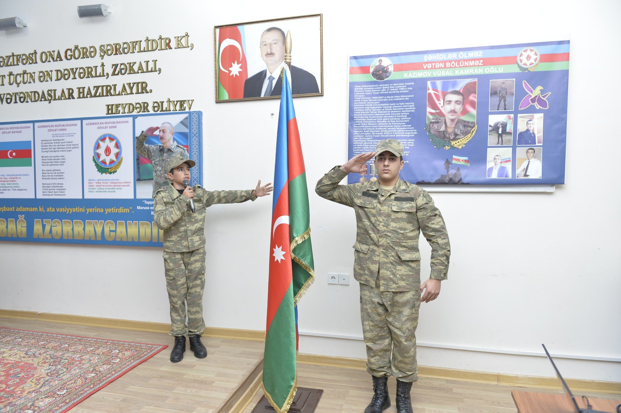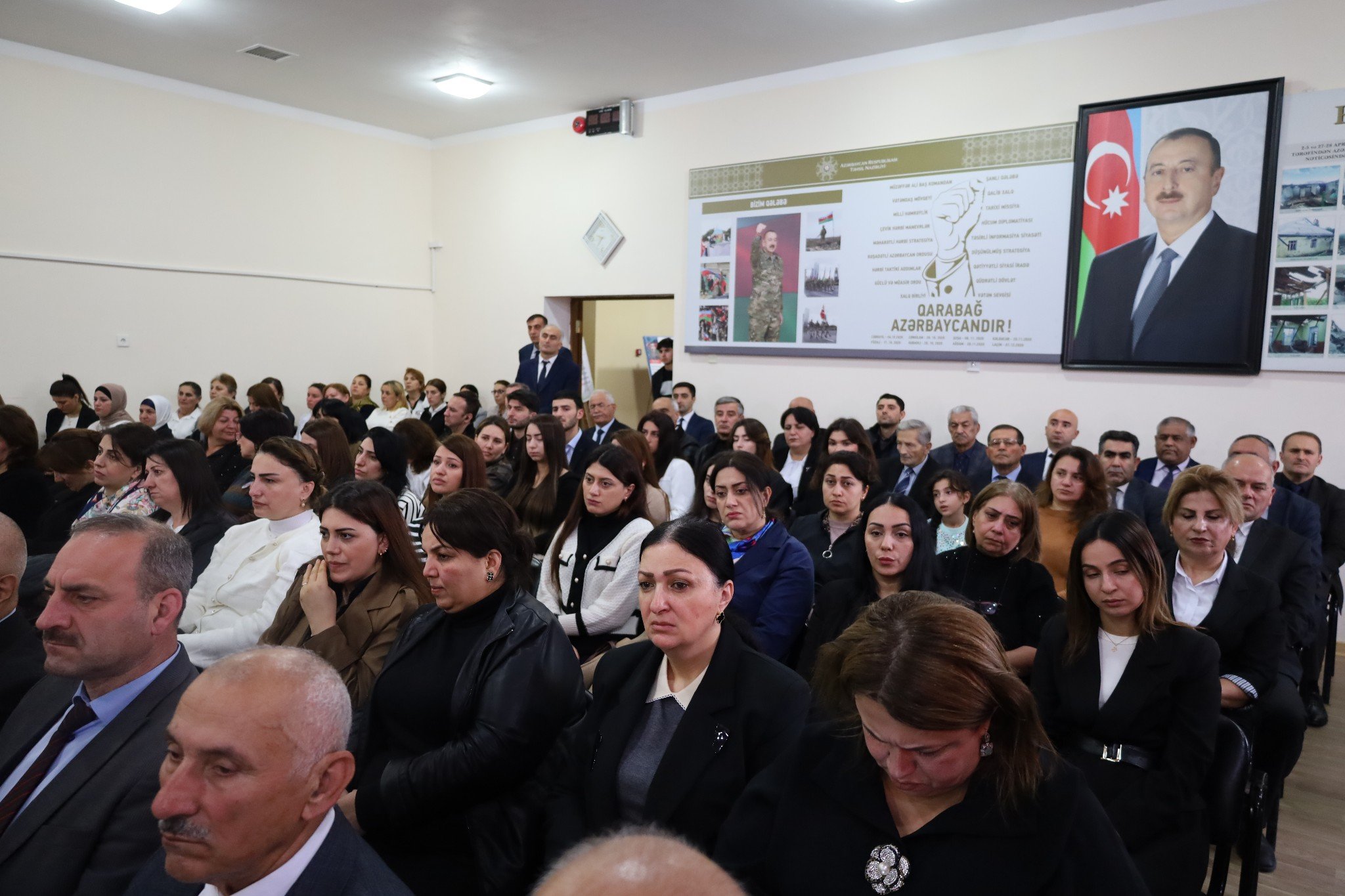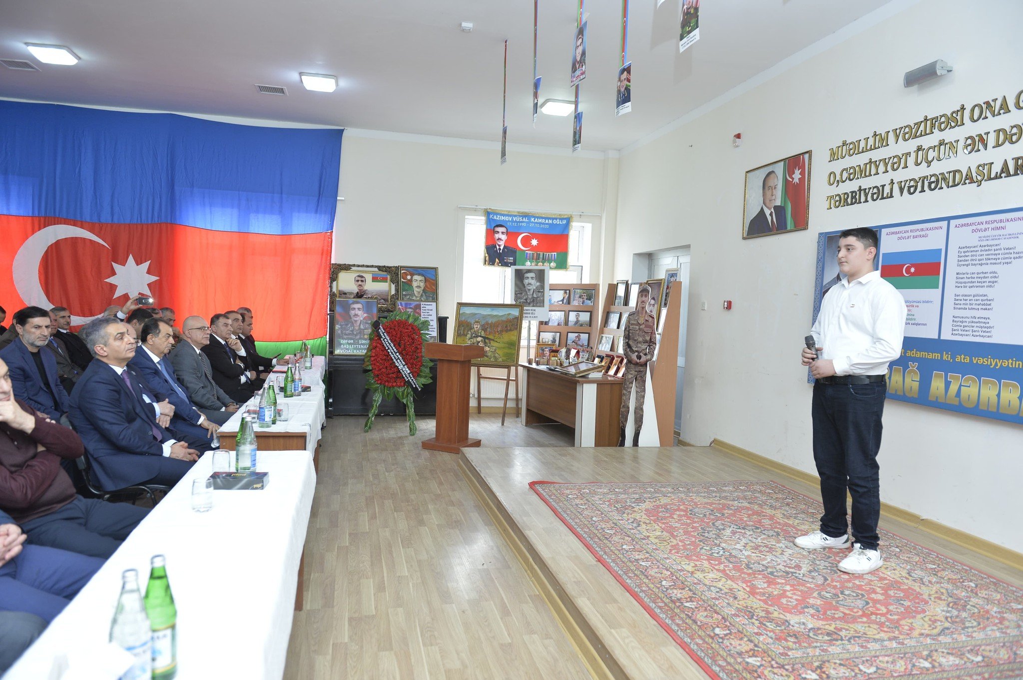 Tədbir şəhidlərin əziz xatirəsinin bir dəqiqəlik sükutla yad edilməsi və məktəblilər tərəfindən Dövlət Bayrağının zala gətirilməsi ilə başlayan Dövlət Himninin səsləndirilməsi ilə açıq elan edilib.