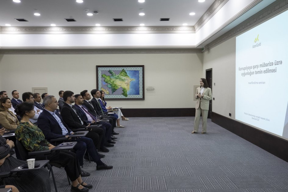 “AzerGold” QSC-də bu qurumun əməkdaşları üçün “Korrupsiyaya qarşı mübarizə üzrə uyğunluğun təmin edilməsi” mövzusunda maarifləndirmə seminarı keçirilib.