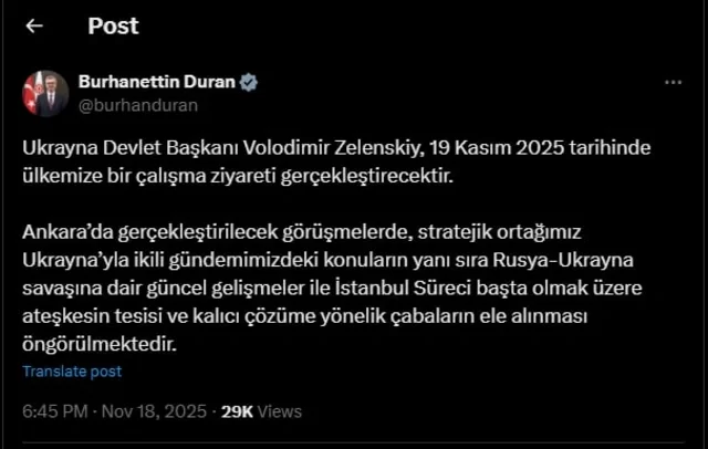 Həmçinin Türkiyə Prezident Administrasiyasının Kommunikasiya İdarəsinin direktoru Burhanettin Duran öz "X" hesabında etdiyi paylaşımda görüşlə bağlı açıqlama verib: