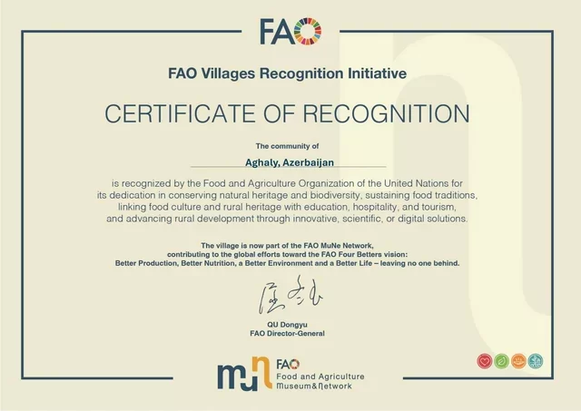 Zəngilan rayonunun Ağalı kənd icması Birləşmiş Millətlər Təşkilatının "Qida və Kənd təsərrüfatı Təşkilatı" (UN, FAO) tərəfindən təbii irsin qorunması, biomüxtəlifliyin dəstəklənməsi və dayanıqlı kənd inkişafına verdiyi töhfəyə görə nümunəvi kənd icması kimi tanınıb.