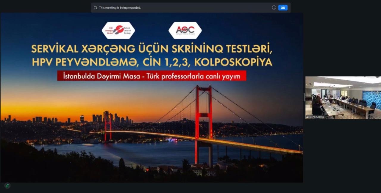 Bu gün Milli Onkologiya Mərkəzi və Azərbaycan Onkoloqlar Cəmiyyətinin birgə təşkilatçılığı ilə ilk dəfə Türkiyənin İstanbul şəhərində, Hilton İstanbul Hotelində “Servikal xərçəng üçün skrininq testləri, HPV peyvəndləmə, CİN 1, 2, 3 və kolposkopiya” mövzusunda beynəlxalq dəyirmi masa müzakirəsi təşkil olunub.